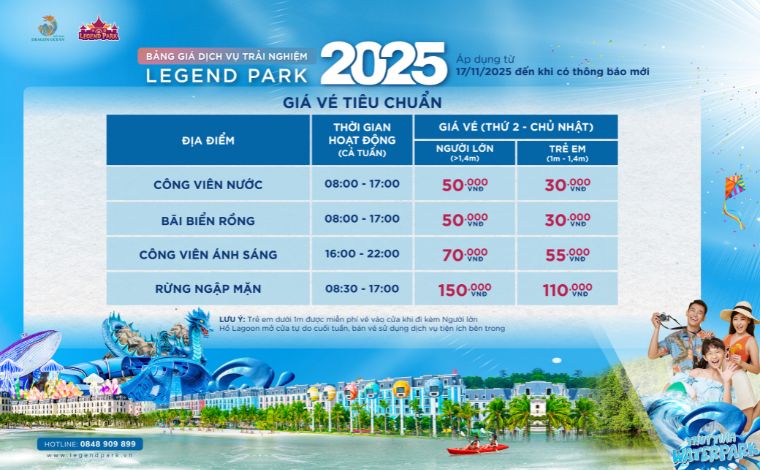 BẢNG GIÁ DỊCH VỤ TRẢI NGHIỆM LEGEND PARK
